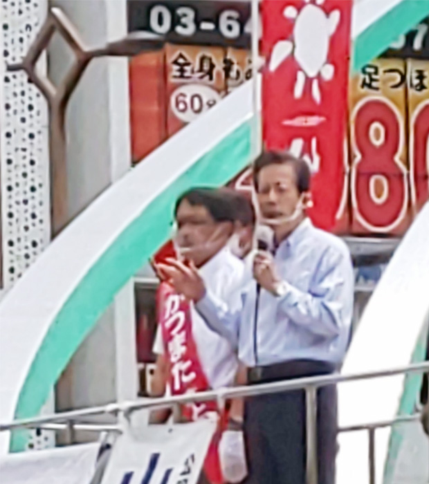 蒲田駅前での“かつまた”候補の街頭演説会に、公明党の山口那津男代表が応援に駆けつけました。