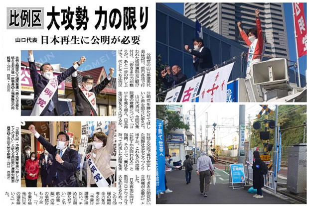 衆院選の最終日を迎え、最後の街頭演説はJR桜木町駅前で、古屋候補(比例区)、三浦のぶひろ参議より力の限りの訴え。最後の法定ビラの配布は地元駅で力の限り心を込めて。