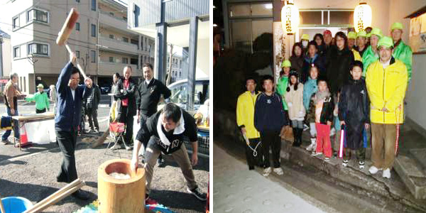 地域では、年末の防犯・防災パトロール、新春の餅つき、防災拠点での防災訓練など、活発に行事が行われています。
