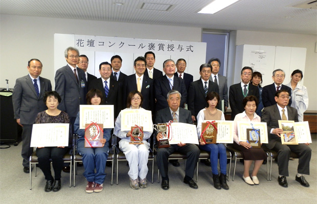 最後に受章者、役員・企画委員の皆様と記念撮影に臨みましたが、花や緑を扱い、デザインも問われる業界でもあり、女性の活躍がここでも頼もしく思えました。