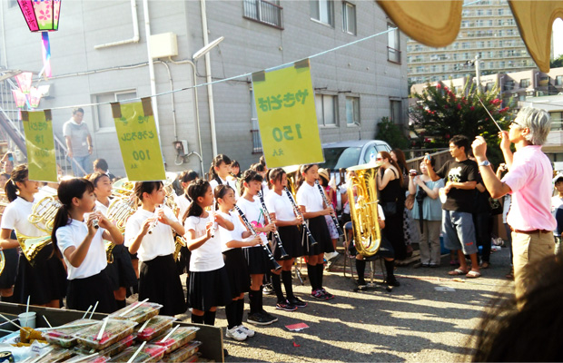 同じ地区にある小学校のマーチンバンドが花を添えたり、南まつりは大きな蒔田公園を人が埋め尽くしました。