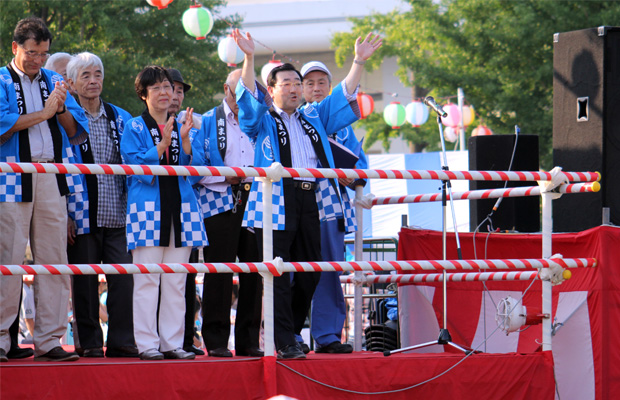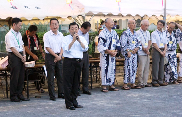 夕暮れの盆踊り開会式の浴衣姿も気持ちがいいものです。