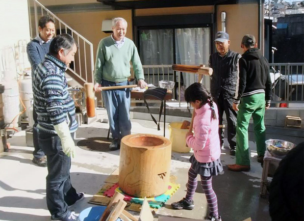 ぎこちない餅つき