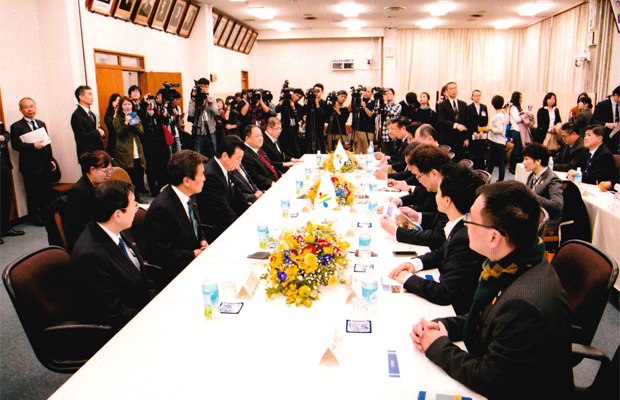 横浜市とパートナー都市提携を結び10周年となる台北市の柯文哲市長をはじめとする代表団が横浜市会を訪問しました。
