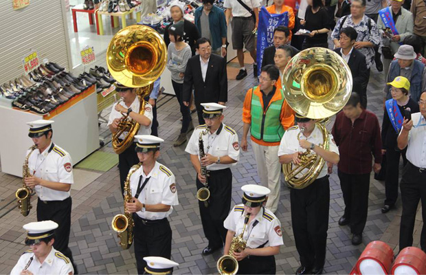 南区薬物乱用防止キャンペーンとして県警のカラーガード隊と音楽隊を先頭にパレードが弘明寺商店街通で行われました。南区薬剤師会が主催し南警察署ほか関連団体の共催によるものです。