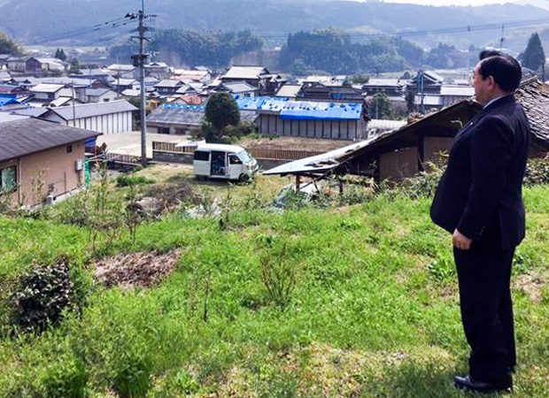 断層に沿って甚大な被害となった益城町ではブルーシートに覆われた屋根が多くみられます。