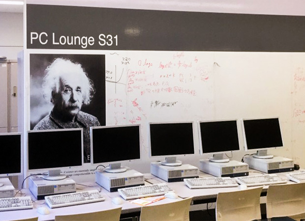 オープンスペースのホワイトボードに書かれている数式など、生徒の議論が闊達に行われている様子が伺えます。