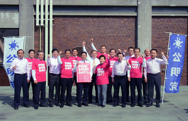 ピンクのシャツを着て登校した男子高校生がいじめに遭い、そのことに2人の上級生が「ぼくらもピンクのシャツを」と提案し、翌日賛同した生徒により学校中がピンク色に染まり、いじめが自然になくなったとのドラマがありました。