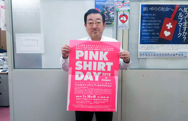 このエピソードを知り州知事が2月の最終水曜日を“ピンクシャツ・デー”と宣言。今や世界70か国以上のワールドアクションとなっています。神奈川県でもこのアクションが広まって来ました。
