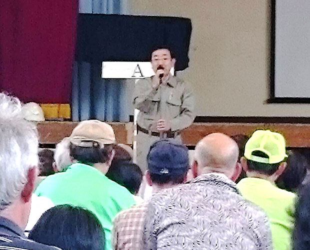 冒頭に挨拶し、拠点にある防災資機材や備蓄について議会での取組みなどを紹介しました。