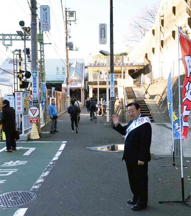 市会議員選挙の5日目は、京急弘明寺駅から始動。