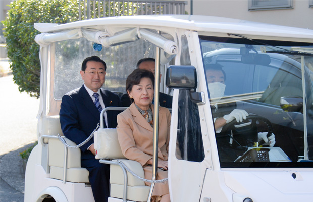 丘陵住宅地における地域内の移動支援として小型電動カートによる乗り合い型移送サービスについて、実証実験が行われました。