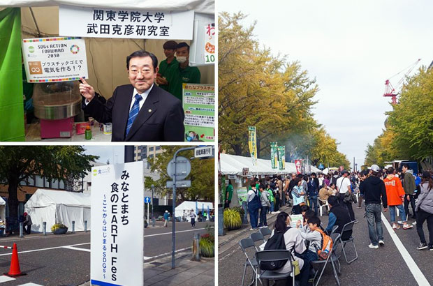 SDGsへの取組にそれぞれの出展ブースが工夫を凝らしていました。プラスティックを油化するシステムに惹かれました。