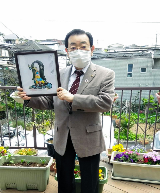 地域への訪問対話活動の中で、「体を大切に、頑張ってください」と、見るだけでも疫病から守られると伝えられるご自身が描いた肥後国海中の怪(アマビエ)に巡り会いました。お気遣いに心からの感謝です。