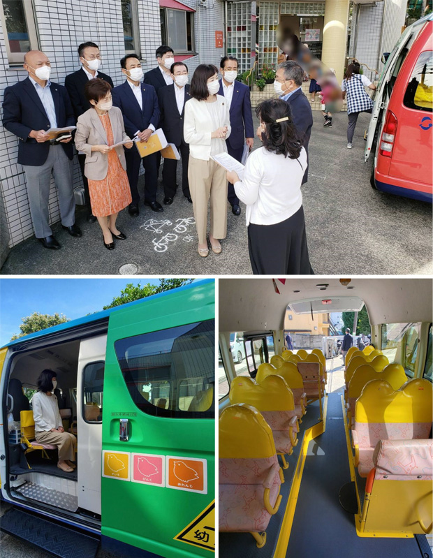 通園バスの到着を視察し、幾重にも施されている安全のための取組が確認できました。