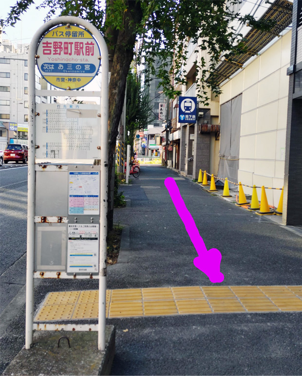 視覚に障がいをお持ちの方々より、地下鉄出口からバス停に向かうも、位置が分からず通り過ぎてしまうとのご相談を頂いて、土木事務所に声を届けていました。