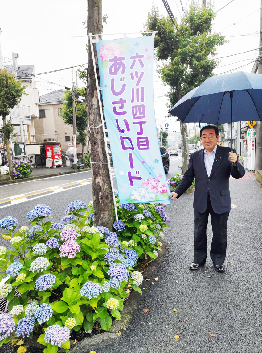 地元町内会の長寿クラブをはじめ皆様で取組んでいただいている「あじさいロード」が今年も沿道を彩っています。 地域の放課後デイには紫陽花の壁画、先日は地元小学校の生徒が“総合的な学習”でつながりました。 継続した「あじさいロード」が随所で花を咲かせており、心から感謝です。