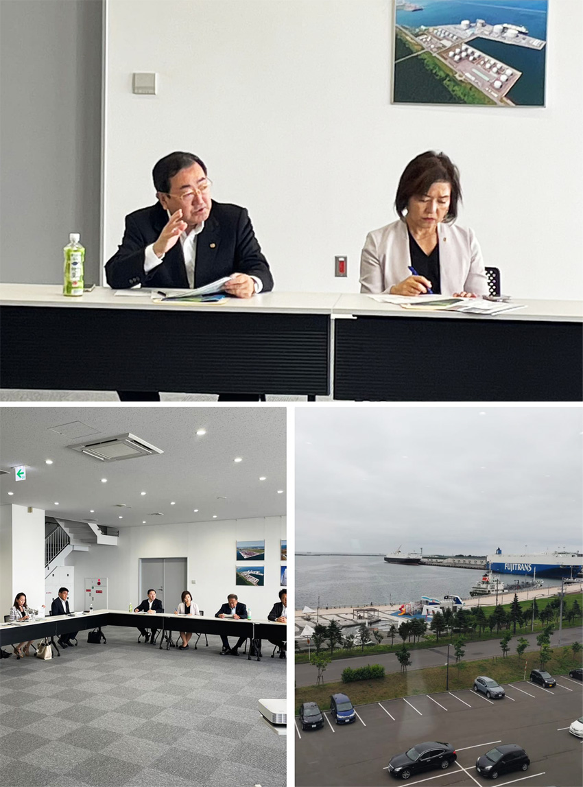 国際・経済・港湾委員会の行政視察の3日目は、苫小牧港整備の取組を聴取しました。 昭和38年の石炭積出しから始まって60年。港湾取扱貨物量(R3;外貿+内貿)は、国内4位となっています。 働き方改革への取組としてダイアグラムの改善もみられます。