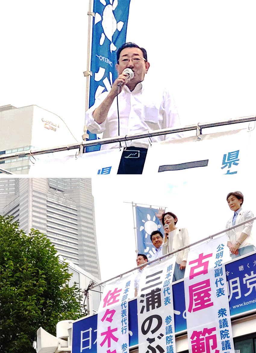 公明党神奈川県本部は、JR桜木町駅前で終戦記念日街頭演説会を開催しました。