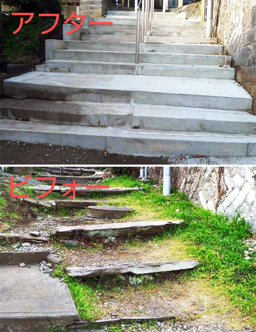 このほど、地域の永年の要望がカタチになり、不安全な階段が歩きやすく整備されました。