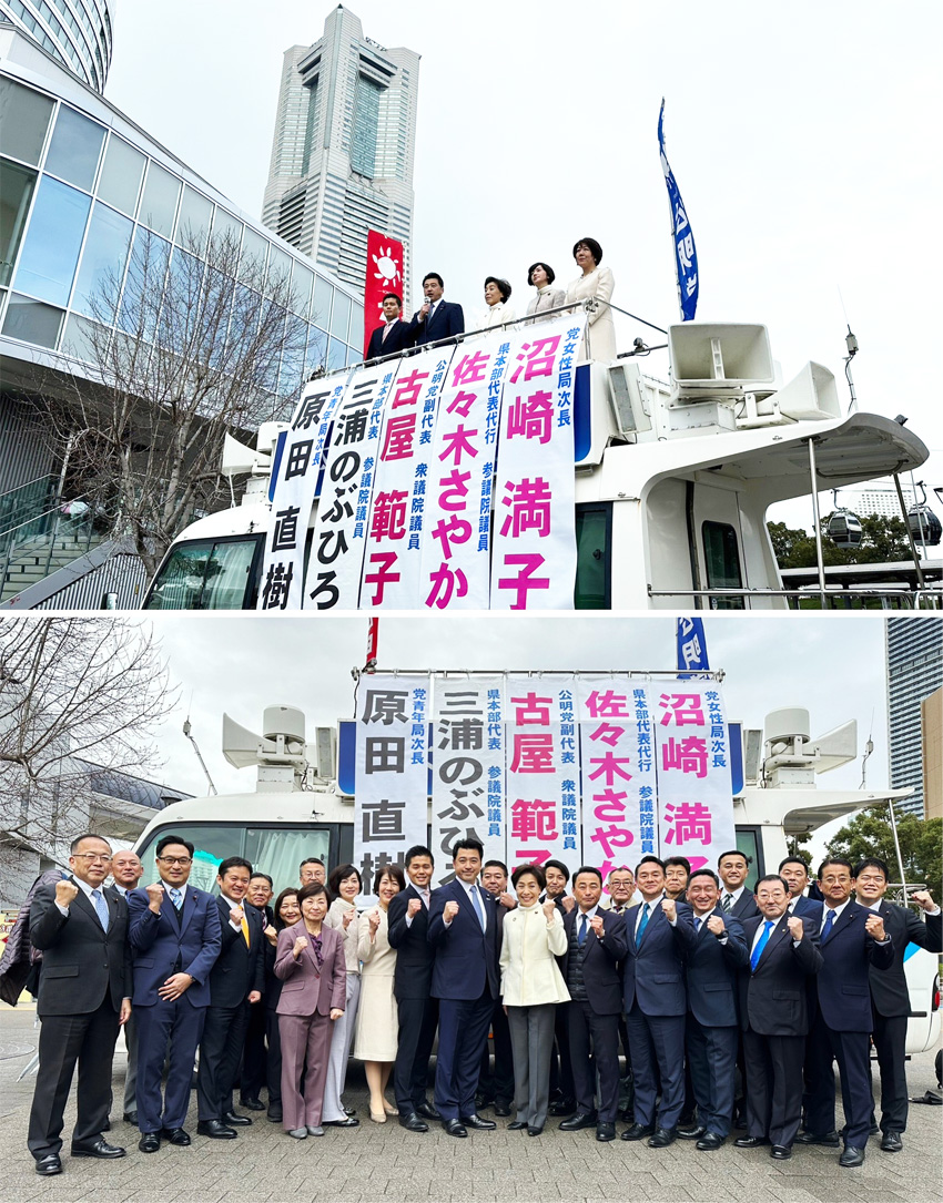 能登半島地震で犠牲になられた方々のご冥福と被災された皆様にお見舞い申しあげます。 公明党神奈川県本部は、桜木町駅前での新春街頭演説会を開催。 早速被災地の地元議員と連携し支援に全力をあげることや、防災・減災対策や物価高対策、外交問題等にも全力を尽くすと、訴えました。