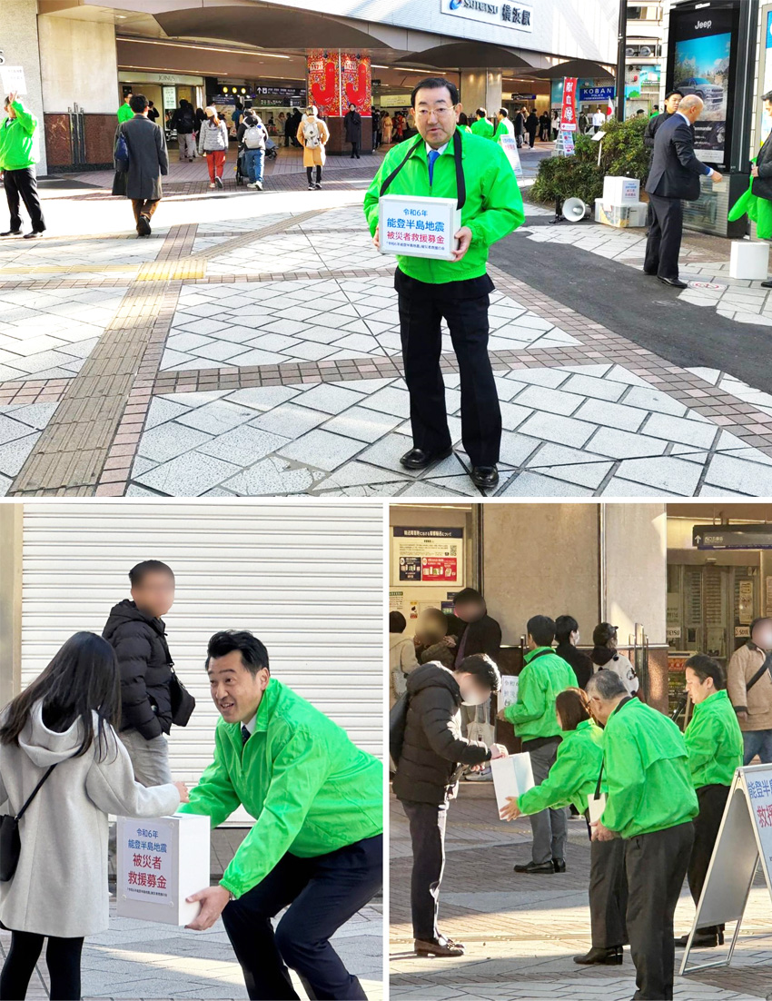 横浜駅相鉄口で行われた「令和6年能登半島地震被災者救援の会(源波正保代表)」による募金活動に協力しました。 通行されている多くの皆様より頂きました真心からの募金は、日本赤十字社神奈川県支部に寄託され被災地支援に活用されます。