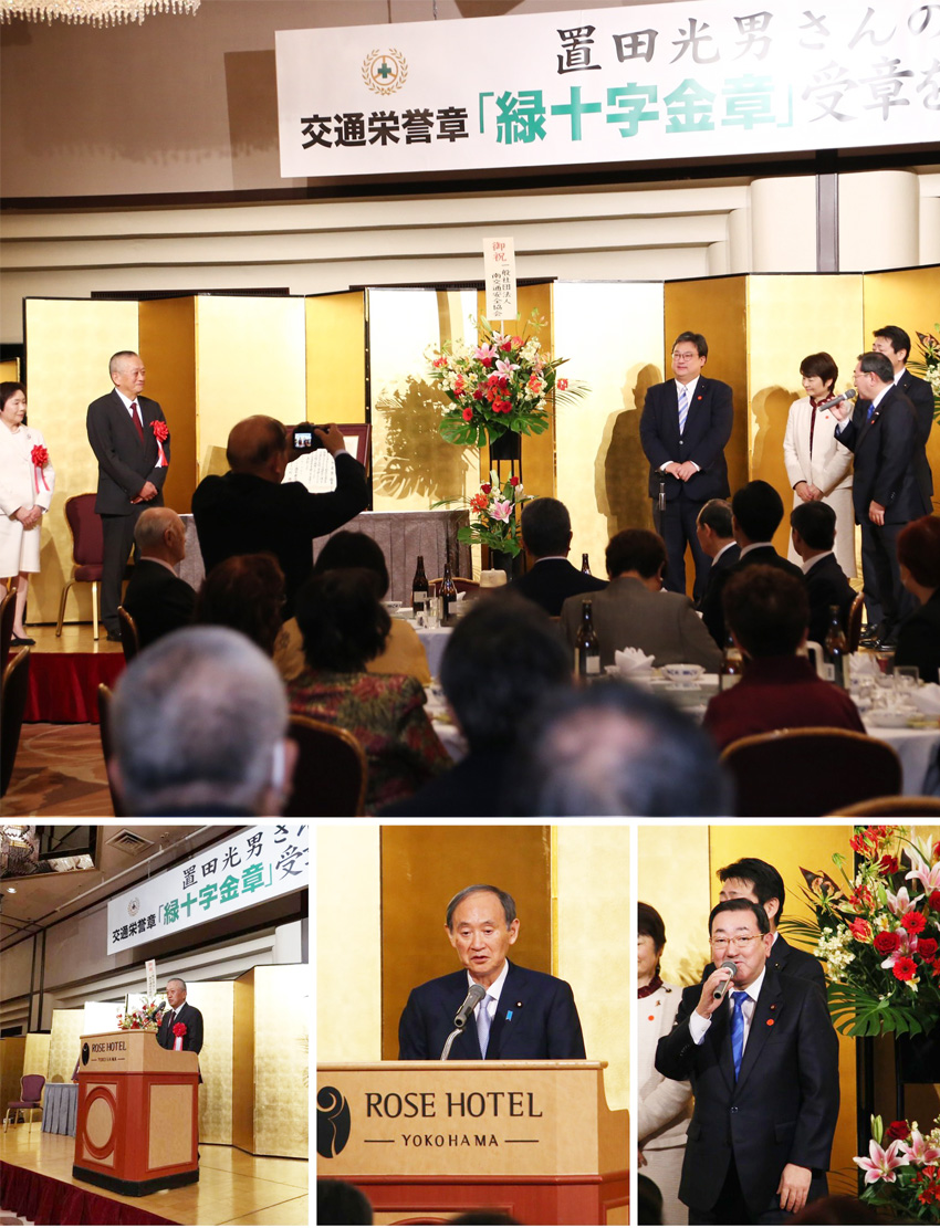 25日、「置田光男さんの交通栄誉章『緑十字金賞』受章をお祝いする会」が開かれました。 「緑十字金章」は、交通安全の功労者等に贈られる最高栄誉に当たる章です。 永年の置田南交通安全協会会長の活動の賜と心から敬意を表し、益々のご活躍をお祈り申しあげます。