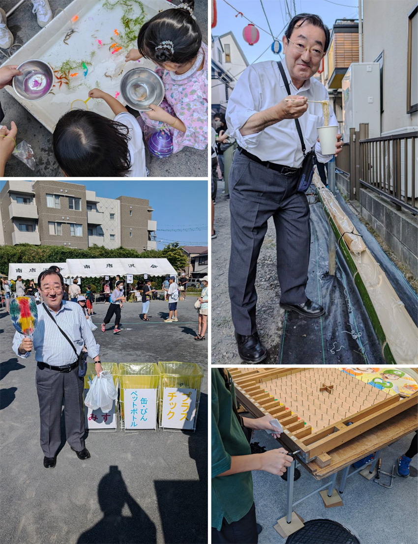 竹を割った流しそうめんや高齢者サロンのブースで販売していた98歳女性が和紙を張った団扇やなどが印象的でした。