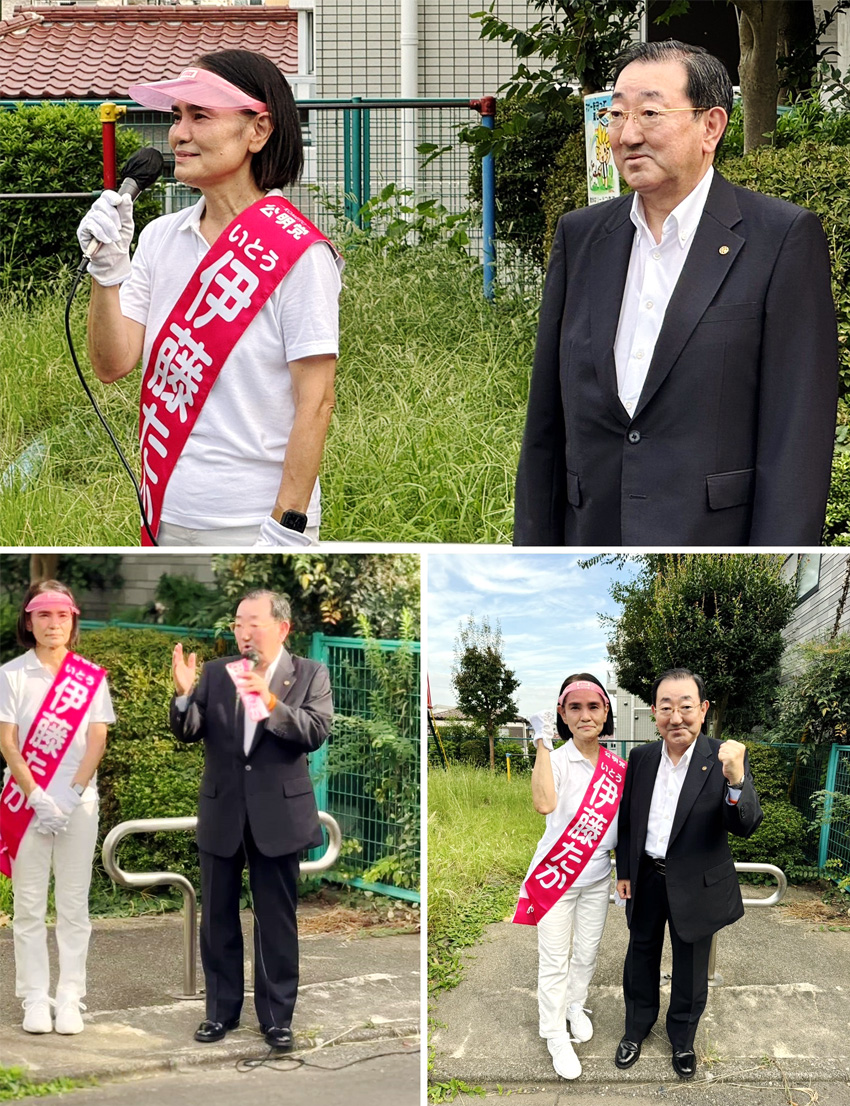 伊藤たか候補陣営の応援に伺い、2期にわたる豊富な実績と「小さな声に寄り添う」行動を紹介し、「伊藤たか候補へ一票を」と訴えました。