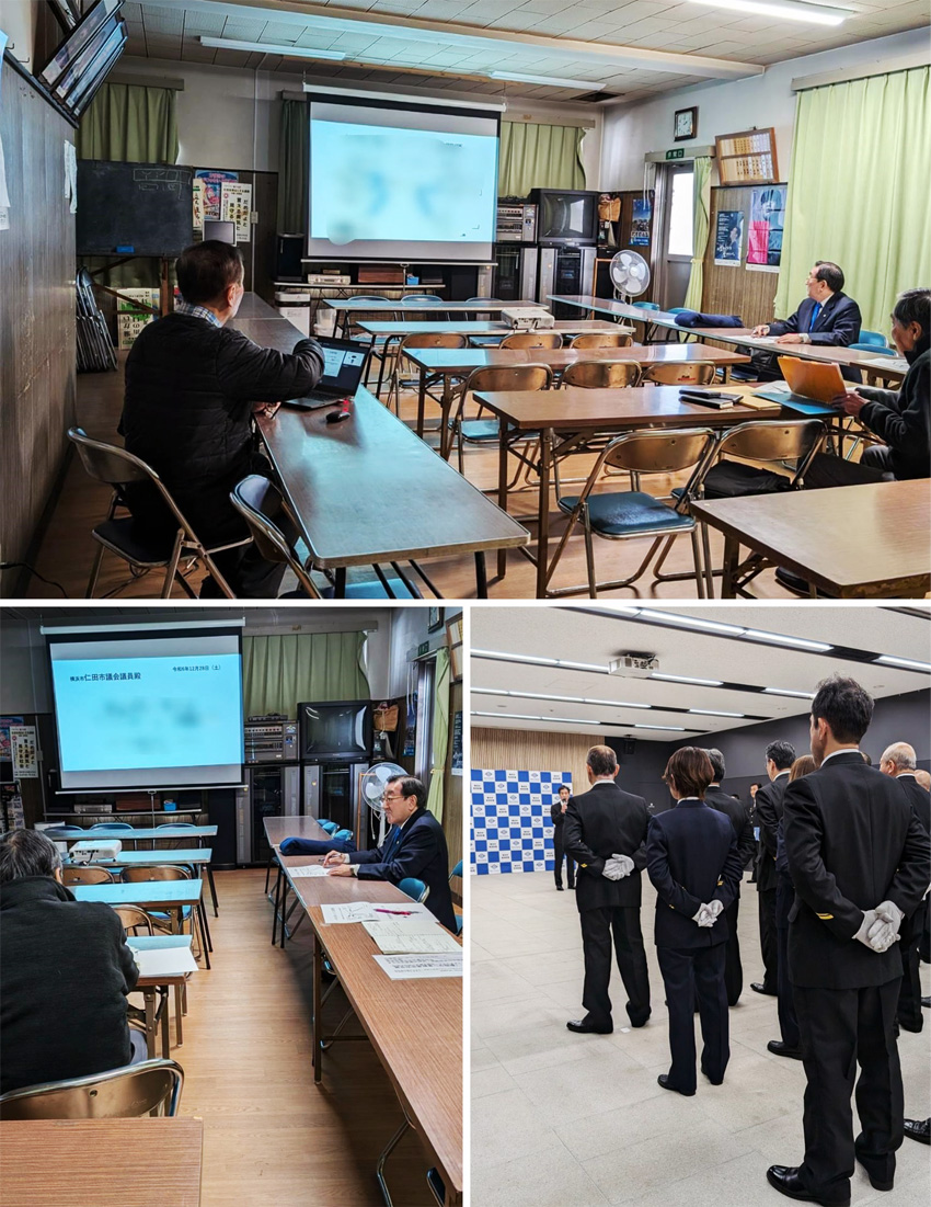 年の瀬となりましたが、現場をまわり色々なご意見を伺っています。 昨日訪問した町内会からのご相談では、課題を整理したプレゼンまで頂きました。 一緒に取組みたいと思います。 夕刻には、年末警戒に向かう消防団の皆様への区長らからの激励がありました。
