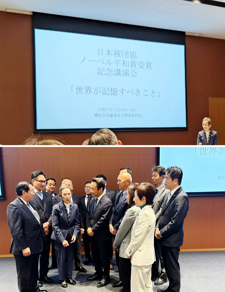 横浜市会にて、「日本被団協ノーベル平和賞受賞記念講演会」が開かれ、被団協の和田征子事務局長が「世界が記憶すべきこと」と題し講演されました。 ご自身やお母様の体験、核廃絶への高邁な行動に畏敬の念を禁じえません。 終了後には公明党市議団と懇談する機会も頂きました。