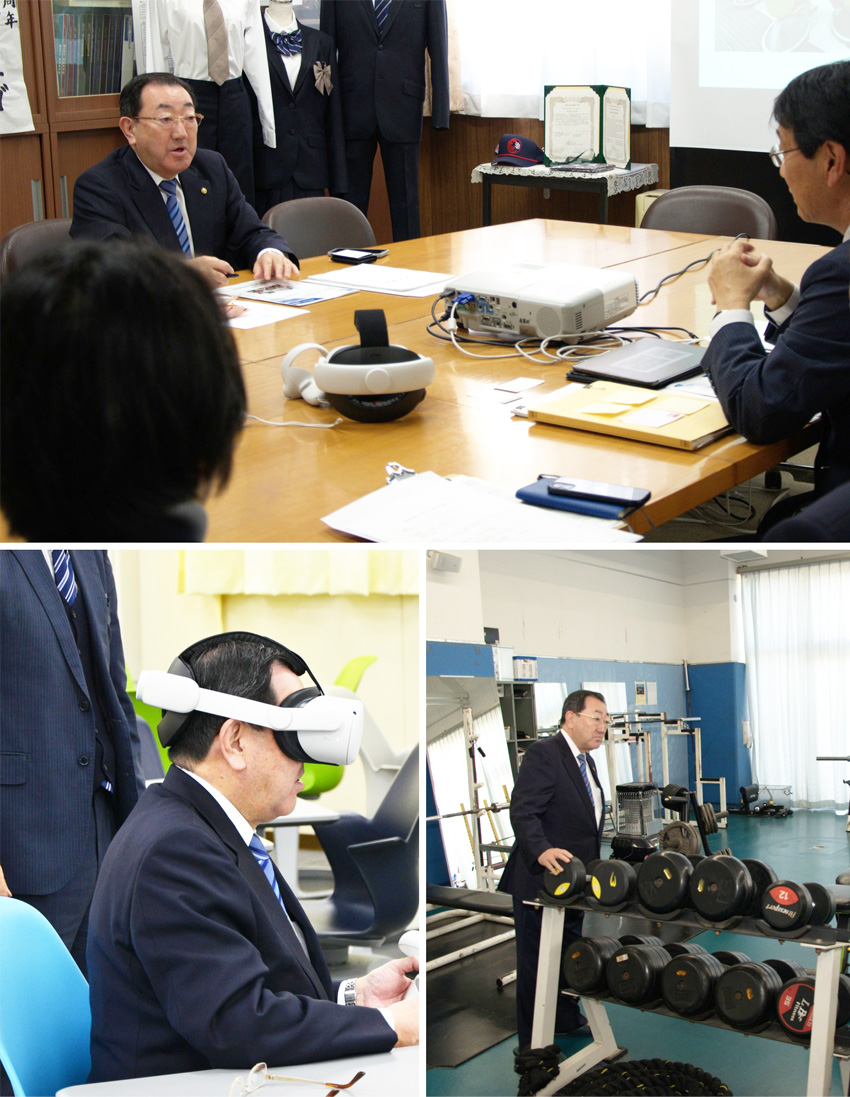 横浜市立東高校を訪問し、大山校長先生らと意見交換しました。 同校は、ユネスコスクール加盟校、横浜市ESD推進校、メタバースモデル校の指定を受け、先進的な取組を行っています。 メタバースセンターではゴーグルを利用した「未来の学びを体感」しました。