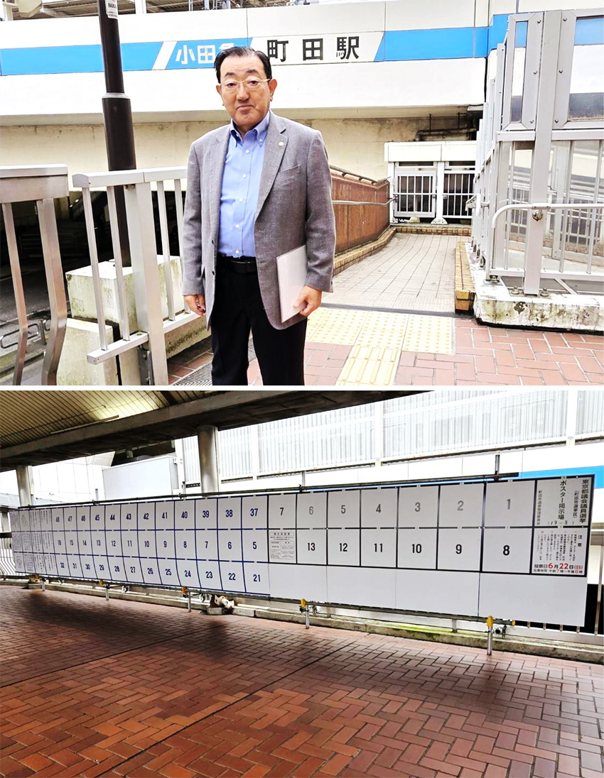 間もなく迎える都議選とその後の参院選に向けて掲示板も準備されていました。