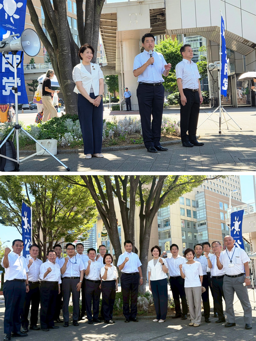 終戦から80年の昨日、公明党神奈川県本部は桜木町駅前にて、終戦記念日街頭演説会を開催しました。 犠牲になられた全ての方々に哀悼の誠を捧げます。 県本部代表の三浦のぶひろ参議院議員と沼崎満子衆院議員が、核兵器廃絶と恒久平和へ闘い続けると力説しました。