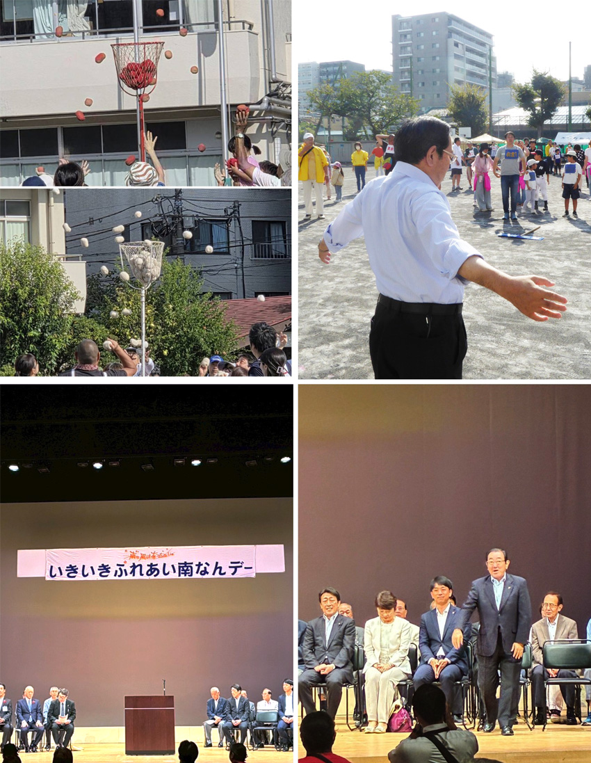 この週末に行われた秋のイベント、健民祭はラジオ体操の後、玉入れから始まりました。