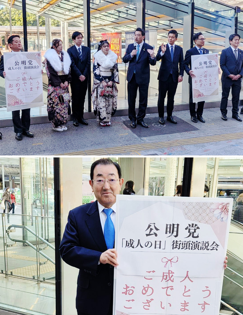 公明党神奈川県本部は、成人の日街頭演説会を横浜市内で開催しました。