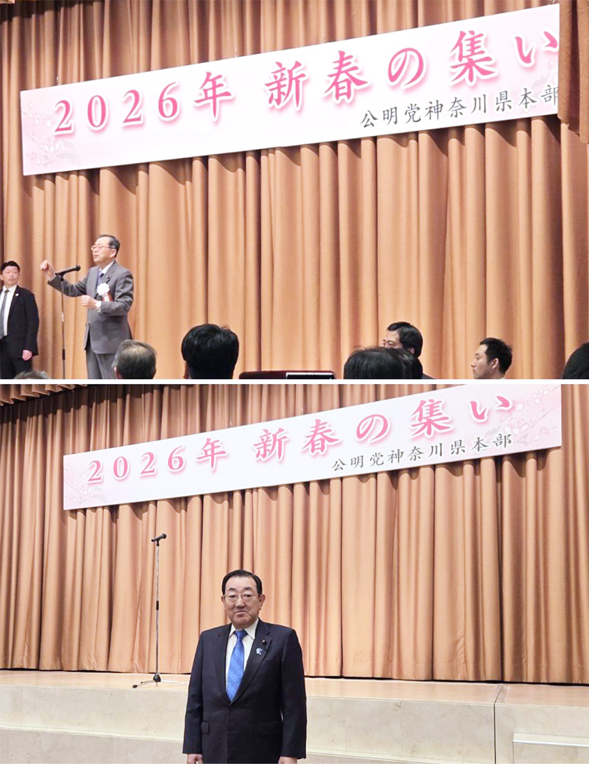 13日、公明党神奈川県本部の“新春の集い”が開催され、党本部から斉藤鉄夫代表が駆け付けました。 斉藤代表は挨拶の中で、「国民生活をないがしろにする衆議院解散に大義はない」とし、総理の専権事項として解散されれば、中道改革勢力の中心軸として戦うと訴えました。