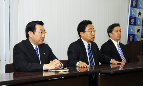 会見では上田県代表より、県議選と横浜市、川崎市、相模原市の各市議選で合計47名の候補者を擁立し、46人が当選し「各候補が健闘し勝利できました」と総括しました。勝因については、「非常事態だからこそ実行力を持った候補者が重要であると一定の理解が得られたと思います」と考えを示しました。一方で、横浜市金沢区選挙区では僅差で惜敗し、県本部としては20年ぶりに全員当選を果たすことができなかったことについて、「非常に残念。みんなの党に票が流れたのか。想定外でありました」と述べました。