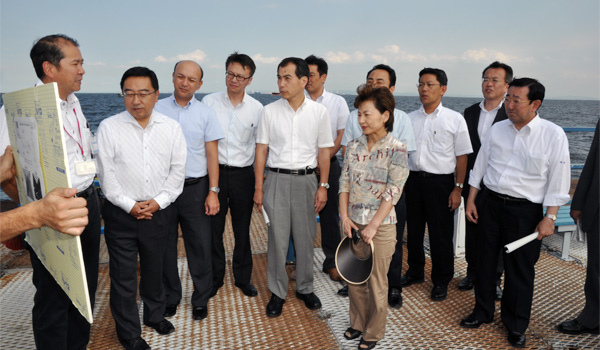 その後、ふ頭岸壁を視察し、桟橋構造の床版や鋼管杭の状況、舗装のひび割れ、海釣り施設の桟橋のさびなどの状況を調査しました。