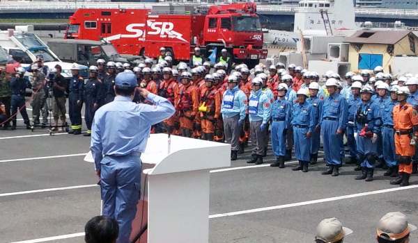 第33回目となる平成24年度の九都県市合同防災訓練は、幹事市を横浜市が務め、中央会場として9月1日(防災の日)に西区みなとみらい21中央地区耐震バース他で実施されました。