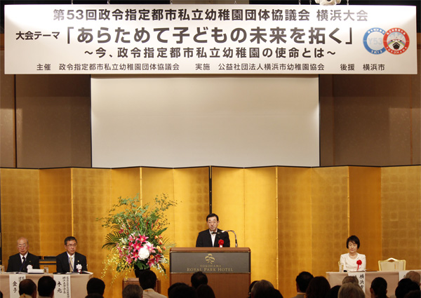 7月11日と12日の、「第53回政令指定都市私立幼稚園団体協議会 横浜大会」が、横浜市西区で行われました。大会のテーマは、「あらためて子どもの未来を拓く」として、政令市における私立幼稚園のあり方や幼児教育について意見交換されました。