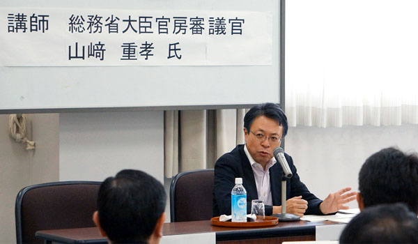講師として招いた山崎重孝 総務省大臣官房審議官が、「大都市制度の諸課題について~第30次地方制度調査会答申を踏まえて~」をテーマに講演し、その後に質疑応答が行われました。
