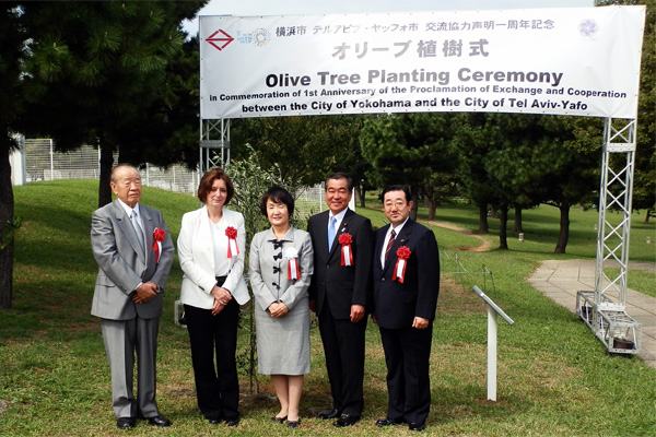 また、30日には、イスラエルのテルアビブ・ヤッフォ市との共同声明一周年記念の「オリーブ植樹式」が、臨港パークで行われました。