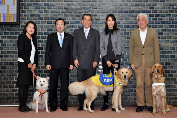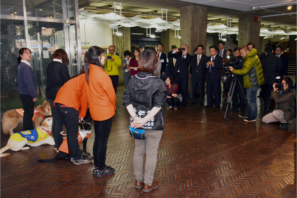 12月3日(火)から12月9日(月)までの障がい者週間最終日の9日、横浜市庁舎に、補助犬である盲導犬、介助犬、聴導犬が、勢揃いしました。