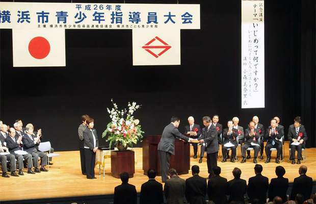 平成26年度の横浜市青少年指導員大会が開催され、永年勤続者への顕彰が行われました。41年勤続の方を最長として多くの皆様が顕彰されていました。