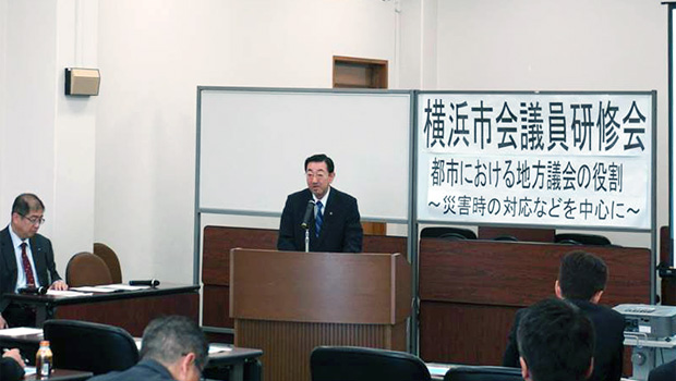 横浜市会では議会基本条例に災害時の議会と議員の役割を示していますが、災害時にはいち早く特別委員会を開き、執行機関への提言や地域の声を公共化する必要がある等、示唆に富む講演でした。