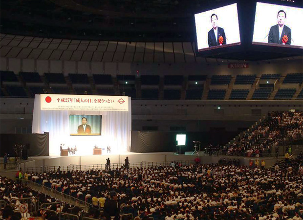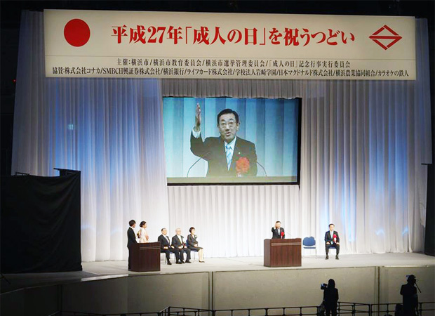 本日、横浜アリーナで「成人の日」を祝うつどいが開催されました。市内の対象者は3万6千人を超え、国内最大級の記念事業です。