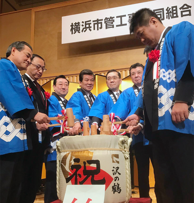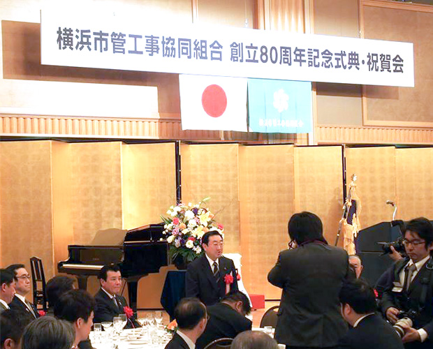 11日、市内の水道工事業者約300社により構成される横浜市管工事協同組合の創立80周年記念の式典が開催されました。