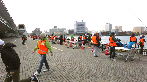 今回は、大さん橋の岸壁で釣りが出来る企画が行われ、多くのボランティアの皆さんが活躍していました。