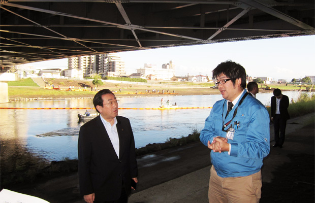 実施に現場を視察し、応急復旧工事の完了とゴム支承への交換など本復旧への取り組みを調査した。